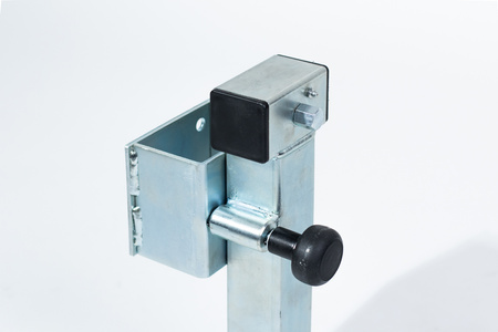 - Noga podporowa to solidny element zapewniający stabilne podparcie przyczepy podczas postoju z obrotowa głowicą SW19, z kołkiem blokującym/łańcuchem